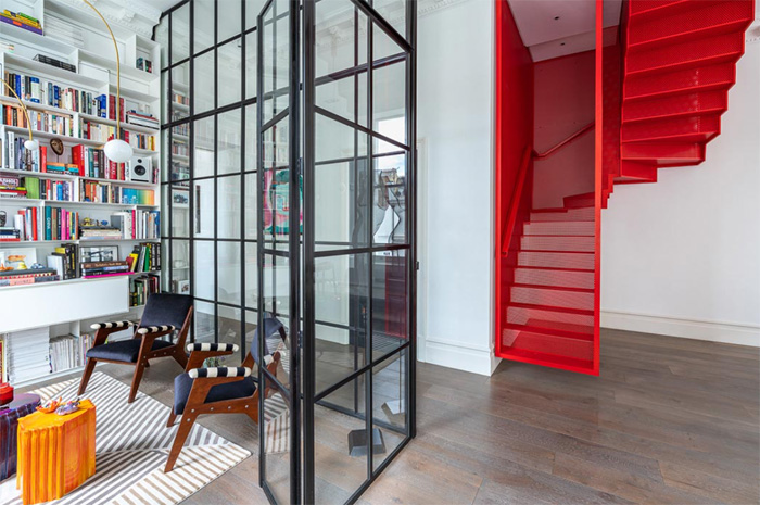 در منطقه سلطنتی کنزینگتون و چلسی لندن، Michaelis Boyd بازسازی یک آپارتمانی گرجی (گرجستان) را انجام داده که فضای داخلی آن شامل یک راه پله قرمز شناورست. معماری اصلی ساختمان در سال 2010 انجام شده، زمانی که استودیو معماری دو آپارتمان موجود را به یک آپارتمان بزرگ در دو طبقه با چهار اتاق خواب تبدیل کرد. تقریباً یک دهه بعد، معماران برگشتند، و جزئیات جالب و شوخ و شنگی را به طرح اظرافه کردند که منعکس کننده شخصیت خلاق مشتریان و فرزندانشان بود که از ماهیت باز و اجتماعی زندگی آپارتمانی لذت می برند. با در نظر داشتن همین موضوع، مایکلِس بوید انتخابهایی سنجیده انجام داده است تا این مفهوم را در خانهای با تمام غنا و جزئیات یک ملکِ گرجی به کار گیرد.