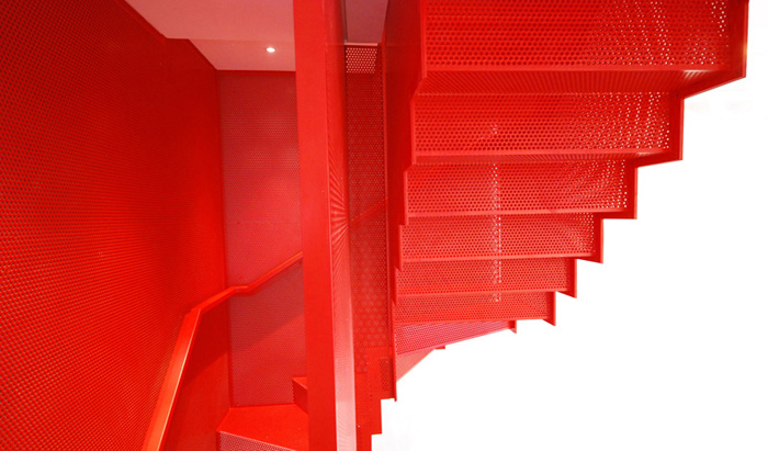 در بازسازی طراحی داخلی، تیم مایکلئیس بوید جزئیات جذابی را درهم می آمیزد که در مرکز آن یک راه پله قرمز شناور میدرخشد. این تیم به جای اینکه هنر را در معرض نمایش قرار دهد، فضایی را ایجاد می کند که مشتری در هنر زندگی کند. این مفهوم منجر به ساخت راه پله جدیدی شد که الهام گفته شده از پله قرمز شناور "staircase-III"طراحی شده توسط Doh Ho Suh است، که در Tate modern به نمایش گذاشته شده است. این پلکان مجسمه ای منحصر به فرد است که دو طبقه را بهم متصل می کند، از ورقه فولاد مشبک ساخته شده و در بالای اتاق نشیمن شناور است.