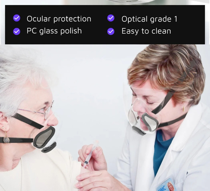 ماسک شفاف همراه با فن برای ورود هوای تصفیه شده