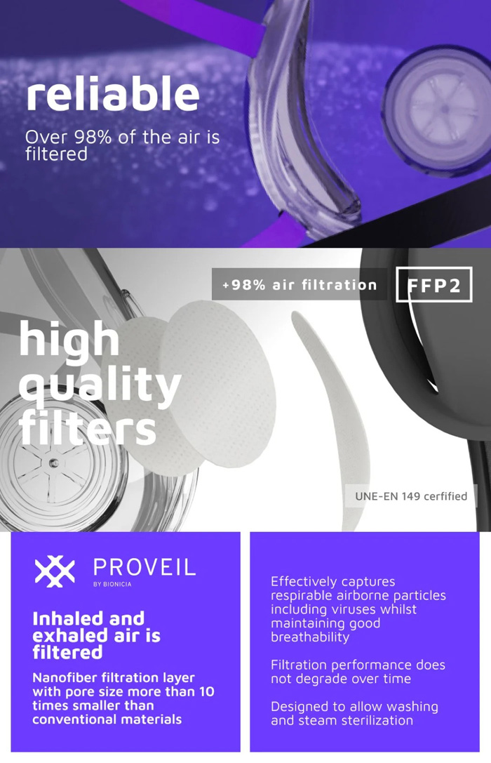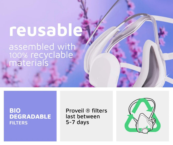 با استفاده از تشبیه ماسک‌ها و تلفن‌های همراه، ماسک weetbe سطحی از طراحی مدولار را ارائه می دهد که من را به یاد Google's Project Ara می‌اندازد. این ماسک، یک ماسک صورت کاربردی با بدنه ای شفاف، طراحی ضد آلرژی و فیلترهای استاندارد است. اما توانایی آن در استفاده از مدول‌های (ماژول‌های) اضافی چیزی است که آن را فوق العاده می کند. weetbe با بدنه ای شفاف همراه با یک پوشش آب بندی هوا و یک پوشش ضد بخار ارائه می شود. تسمه های قابل تنظیم به ایمن سازی ماسک در اطراف صورت کمک می کنند، در حالی که فیلترهای جلو و همچنین پهلوها به شما کمک می کنند تا 98٪ هوای تمیز و تصفیه شده تنفس کنید. این ماسک به فیلترهای Proveil مجهز شده است که از نانوالیاف ساخته شده‌اند که به اندازه کافی کوچک هستند و ذرات قابل تنفس موجود در هوا از جمله ویروس ها را به دام می‌اندازند. این فیلترها قابل استفاده مجدد هستند، قابل شستشو یا استریل شدن در بخار هستند، زیست تخریب پذیر هستند و به شما امکان این را می‌دهند که به راحتی و بدون احساس گناه تعویضشان کنید!
